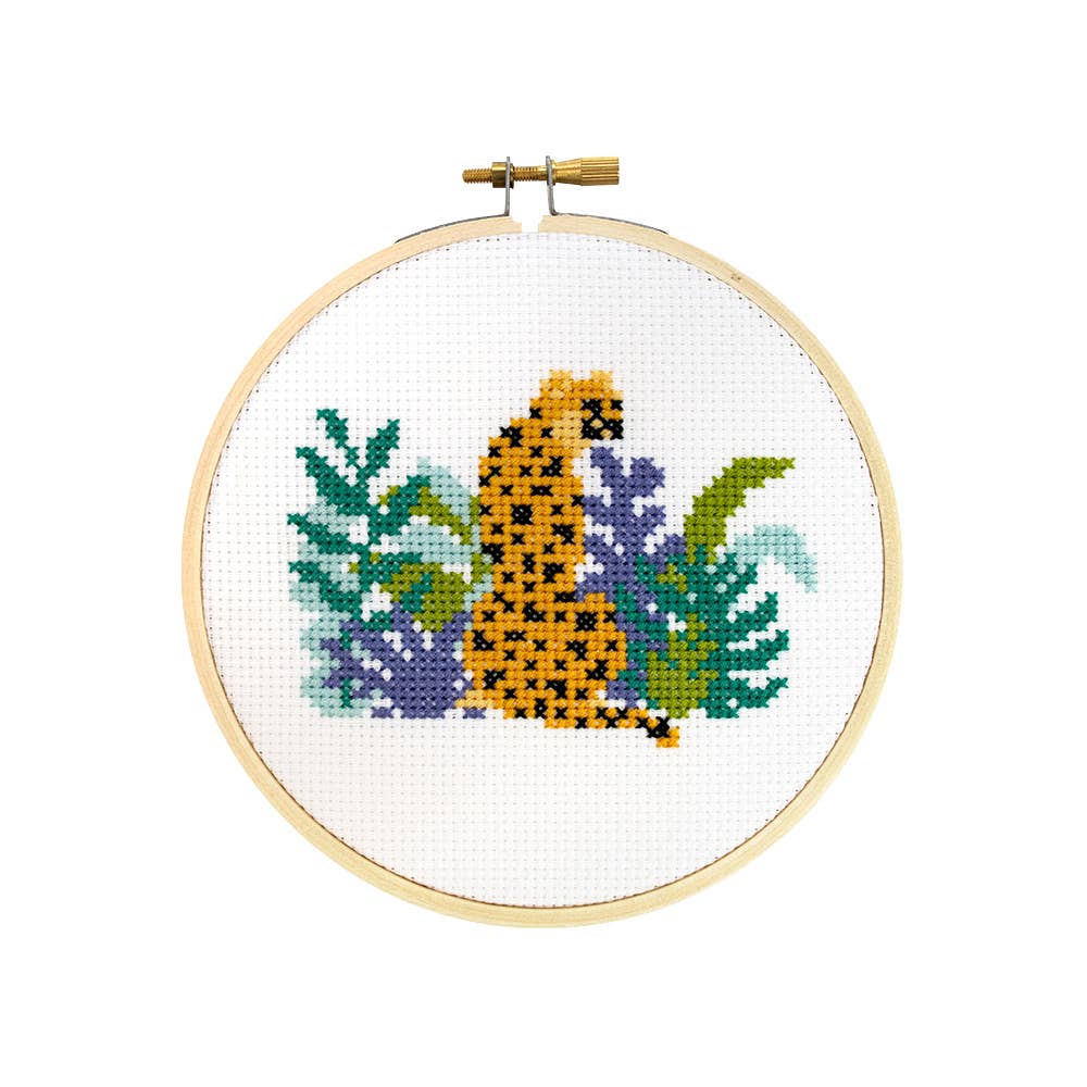 Unplug and embrace the cozy comfort of cross stitching! Are you a gosh darn cheetah?! Get in touch with your inner cheetah and rise above the madness with the fierce grace of a G'darn Cheetah!! Our DIY Craft Kits keep your hands busy and your mind calm. Whether you cross stitch solo or with friends, it's the perfect way to escape the digital world and recalibrate. Bonus you get a cool piece of art! Kit Includes: counted cross stitch pattern, embroidery needle, embroidery hoop, DMC embroidery thread, 14 count aida cloth, step by step instructions. Box: 6.25" x 1" x 6.25". Cheetah: 5 inches. DIY crafts. Handmade