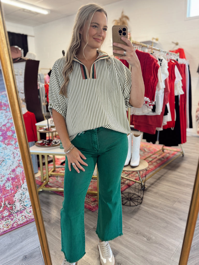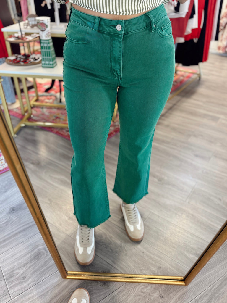 Acid Washed Frayed Hem Jeans - Green